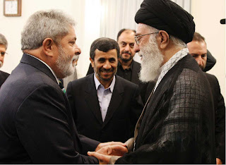 Então, sem muito mais tempo para torrar o dinheiro das burras públicas, Luiz Inácio Lula da Dilma se mandou travestido de presideus mundano para o Irã. Foi apertar a mão do Líder Supremo do Irã, Aiatolá Ali Khamenei, em Teerã, e meter contra a parede o amigo velho de guerra, Mahmoud Ahmadinejad. Como se sabia, a gastança não deu em nada. Nem sequer garantiu a cadeira na ONU tão almejada - leia alvejada - por Lula.